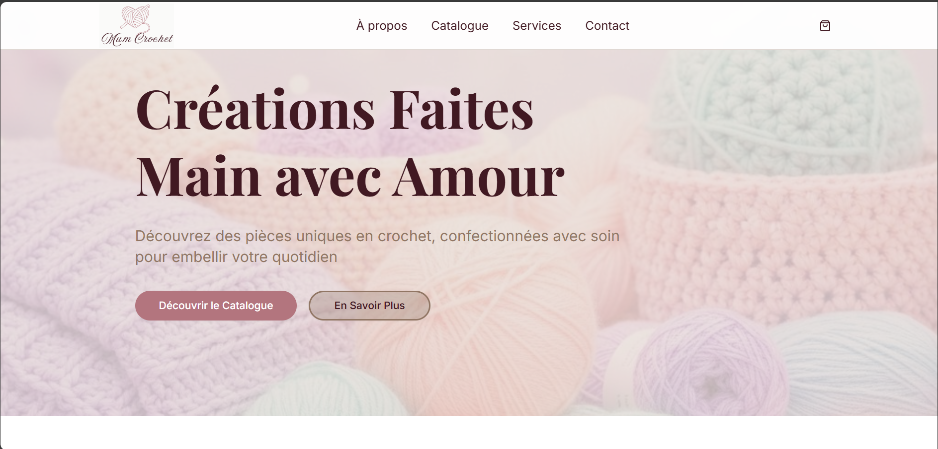 VitrineSite vitrine mettant en valeur des créations artisanales en crochet, avec un design chaleureux et une présentation claire des produits.